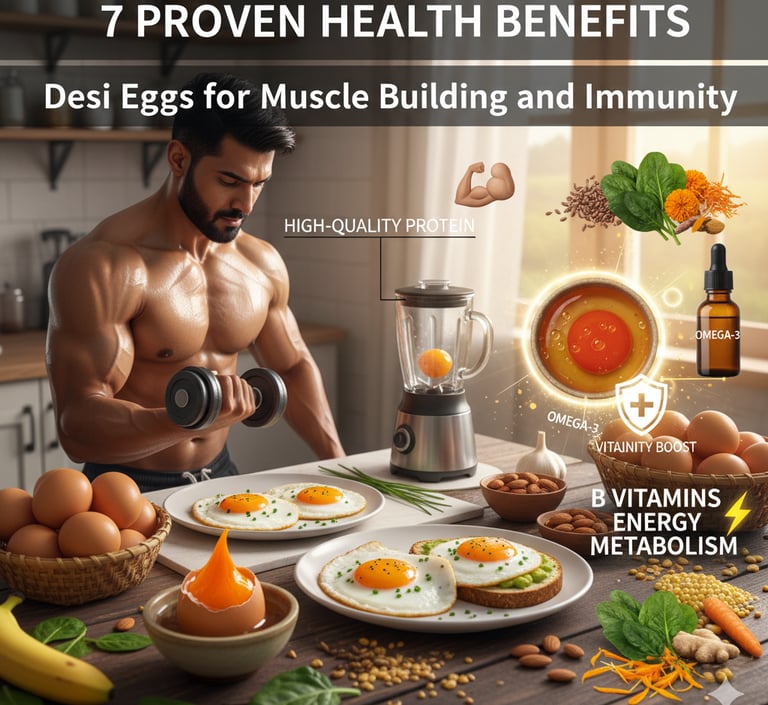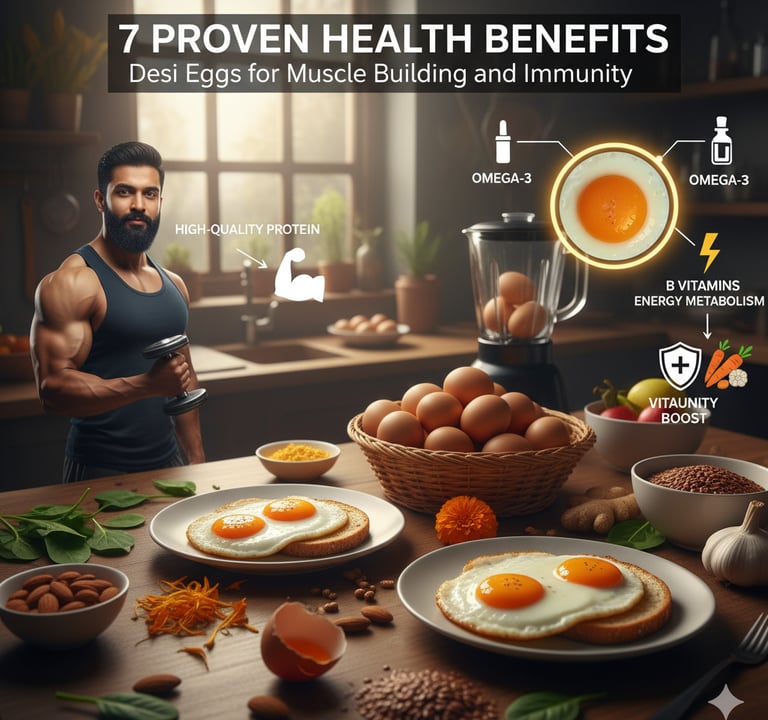 Discover the powerful advantages of Desi eggs for your body! From superior muscle growth to a boosted immune system, learn how these traditional country eggs can transform your health. Dive into the 7 key benefits!