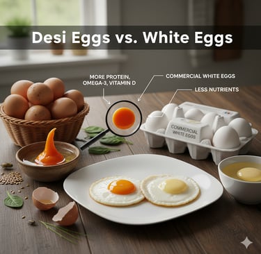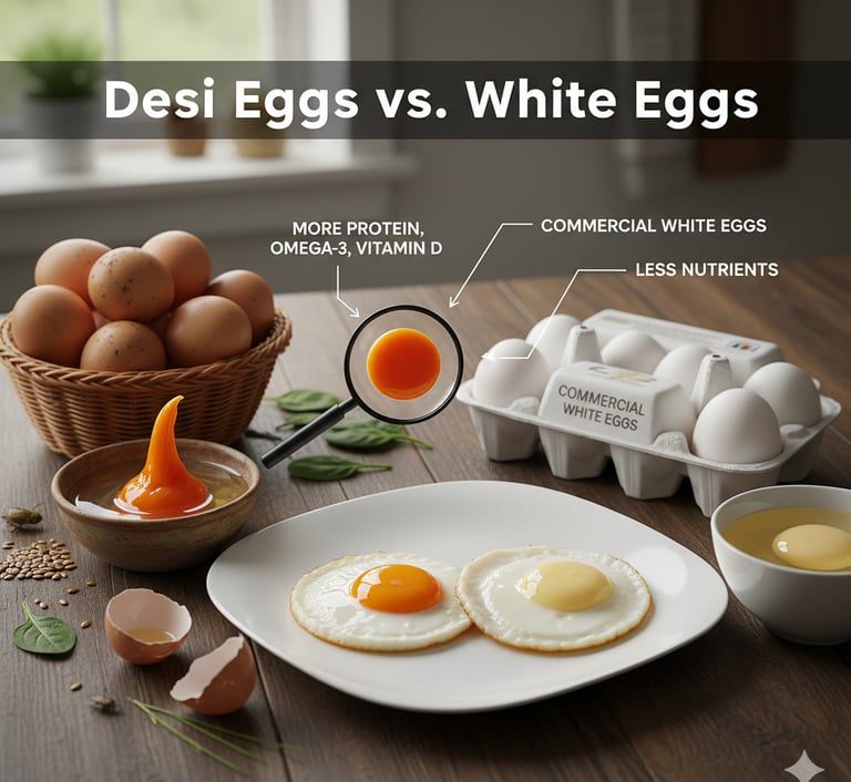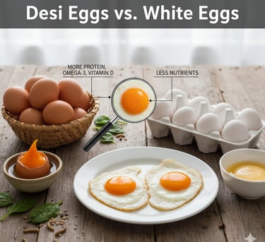 Are Desi eggs truly superior to factory-farmed white eggs? Dive into the ultimate nutritional comparison, exploring protein, Omega-3s, and the hidden power of the deeper yolk color! Find out why choosing brown is better for your health